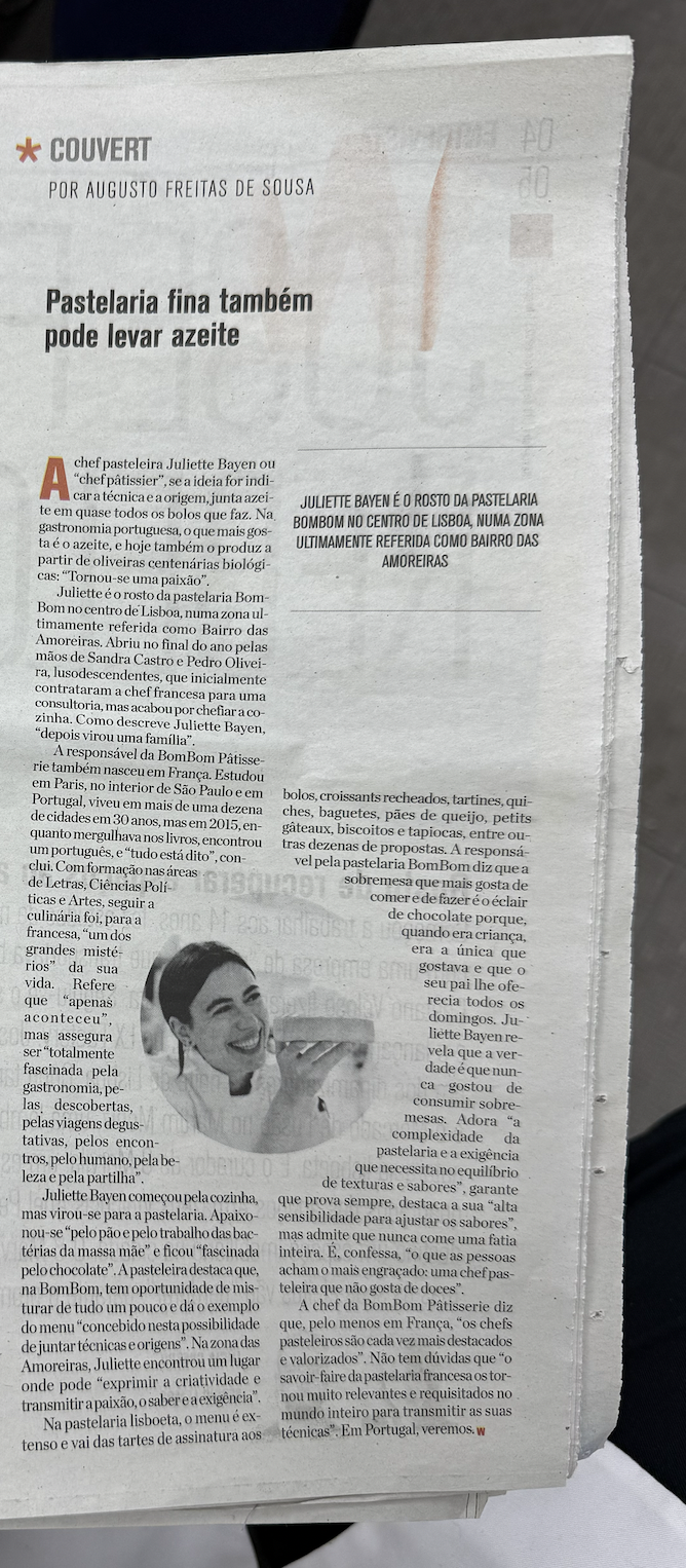 Back in Portugal, and living between Alentejo and Lisbon, I opened my own cake business, started consulting pastry shops and running workshops to share my techniques and knowledge in this area. Today, after embracing a very ambitious project, I am the Executive Chef, Pastry Chef and Kitchen Manager at Bombom Pâtisserie, a new creative pastry shop in Lisbon that values French savoir-faire, totally handmade work that also draws inspiration from Portuguese and seasonal ingredients.